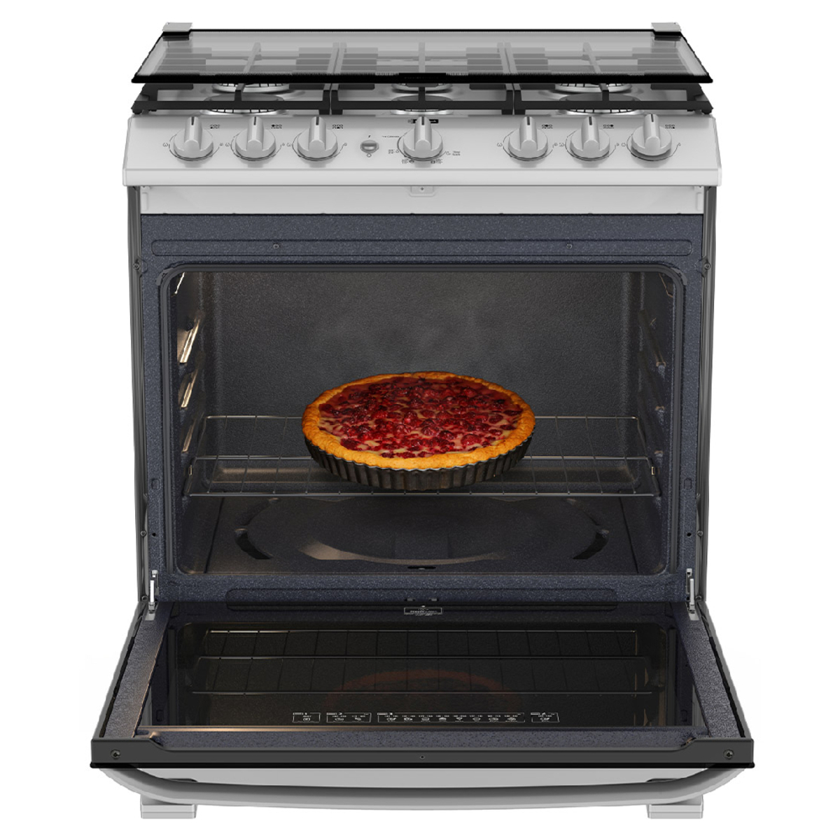 Cocina de gas con Tecnología Ultimate, cuenta con quemador Jumbo de gran potencia para preparar todos tus platillos, hornea sin complicaciones con los 5 rangos de temperatura que se adaptan a tus recetas, limpia tu horno tan fácil como un vidrio con Easy Clean Pro, además evita que líquidos y alimentos se filtren al interior del horno gracias a su cubierta sellada.