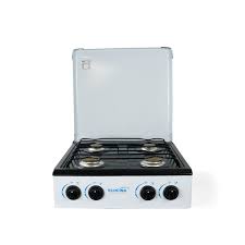 Cocina de mesa con respaldo de cuatro quemadores.