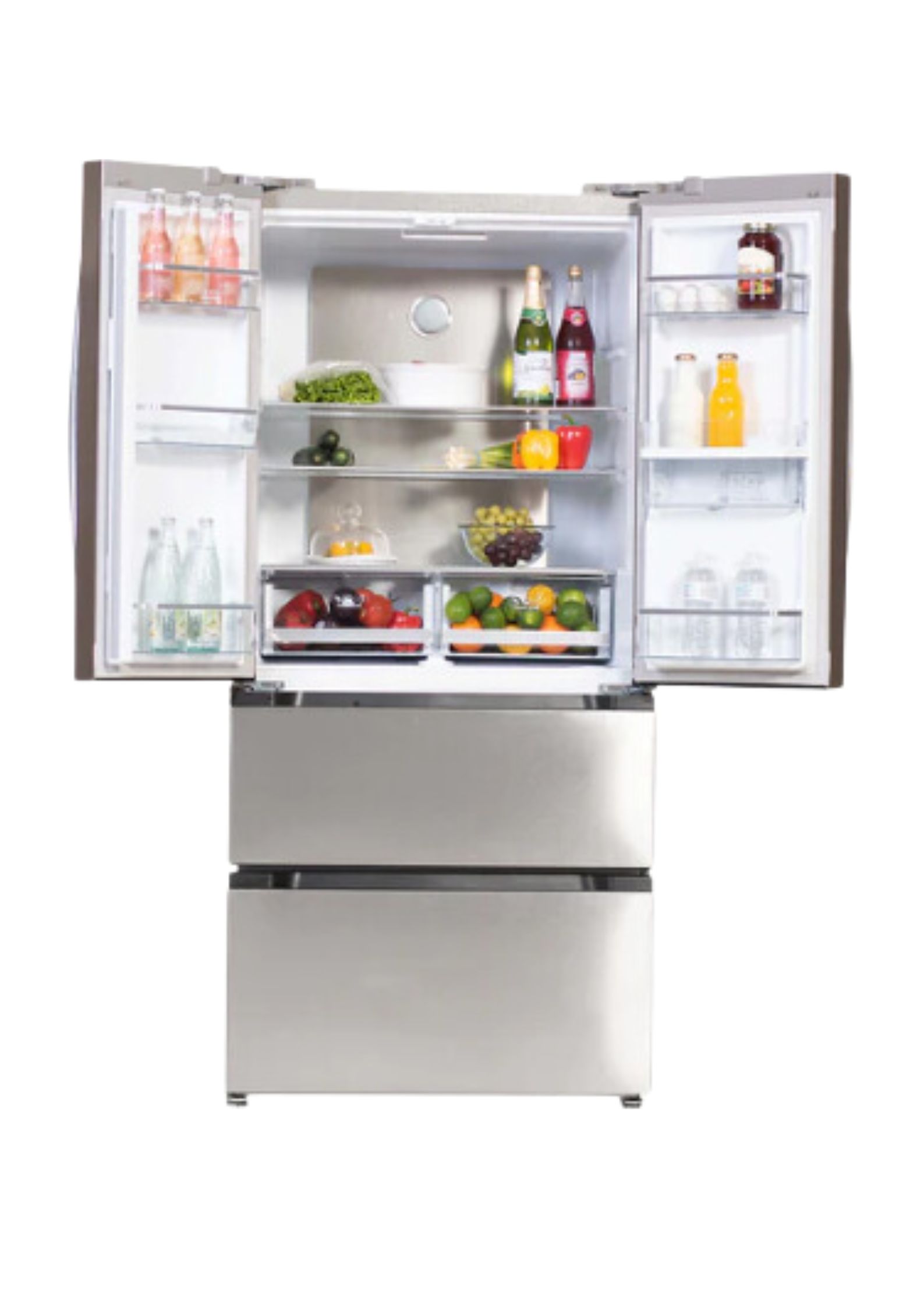 Nuestro modelo GRFDI18SW INOXIDABLE de dos puertas, con dispensador de agua fría, es ideal para almacenar.